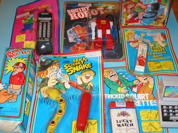 Zanimljiv set od 8 igračaka koje na dodir špricaju vodu. Set sadrži: mini kompjuter, wc školjku, cigarete, gume, robot, mobitel, zmiju, dečka. Idealno za dječje ljetne radosti.